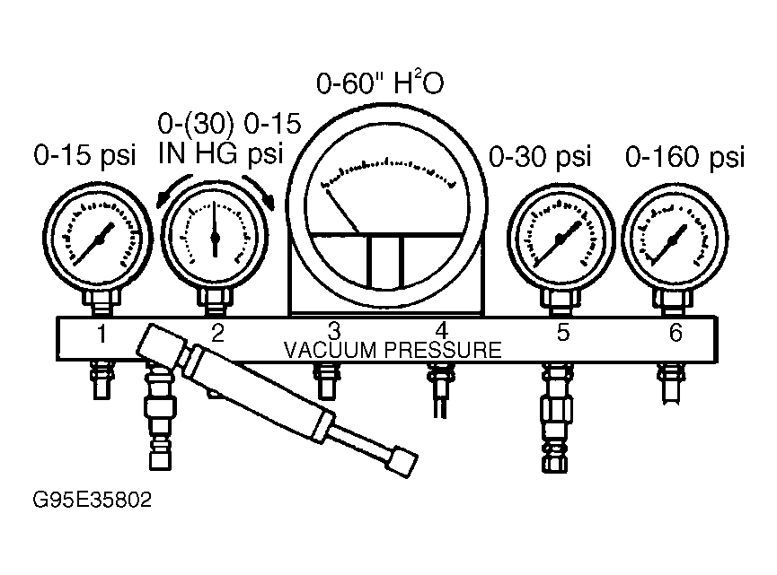 - Remove fuel line from outlet side of fuel pump. Install fuel pressure adapter between fuel outlet line and electric fuel pump. Connect fuel pressure adapter to 0-160 psi (0-1103 kPa) gauge at engine pressure tester. See Fig 1.