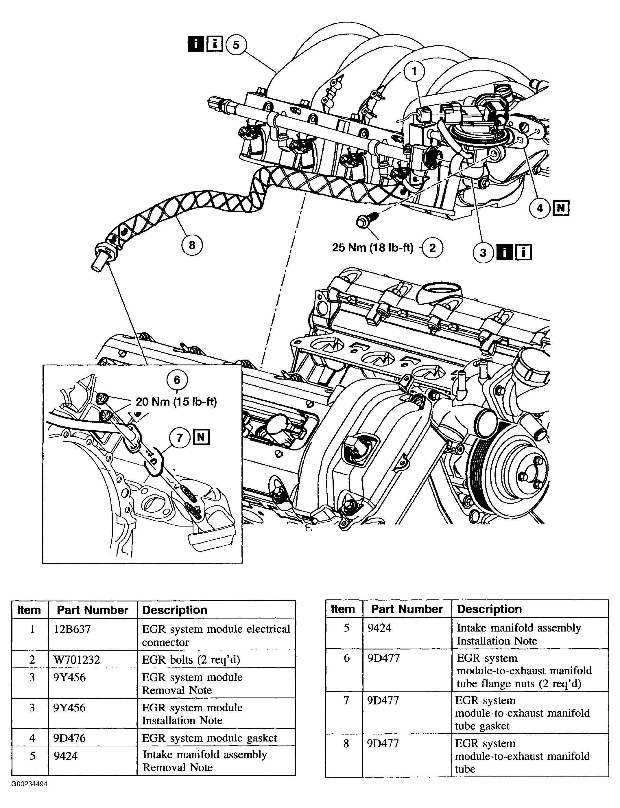 Install the intake manifold. See INTAKE MANIFOLD under AIR INDUCTION SYSTEMS. - Item 3: EGR System Module Installation Note