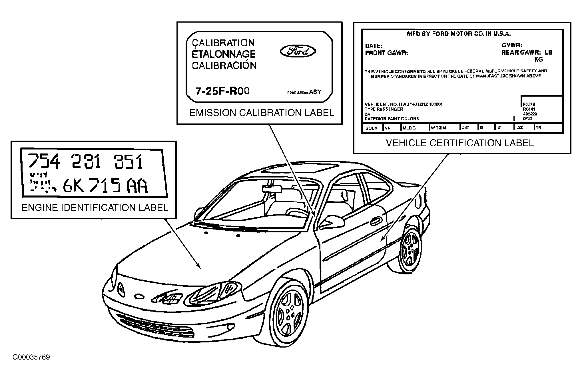 Fig 1: Locating Vehicle Labels (ZX2 Shown; Other Models Are Similar)