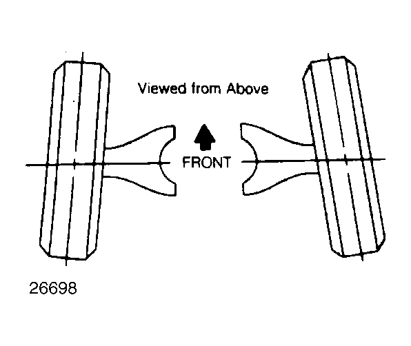 Toe-in is the width measured at the rear of the tires subtracted by the width measured at the front of the tires at about spindle height. A positive figure would indicate toe-in and a negative figure would indicate toe-out. If the distance between the front and rear of the tires is the same, toe measurement would be zero. To adjust: