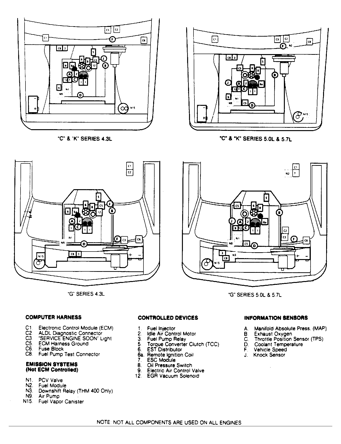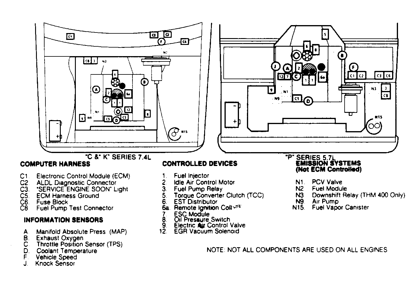 Each sensor furnishes an electrical signal to the ECM, modifying injector pulse width to conform to engine operating conditions. See Figure, Figure and Figure. These sensors are as follows: