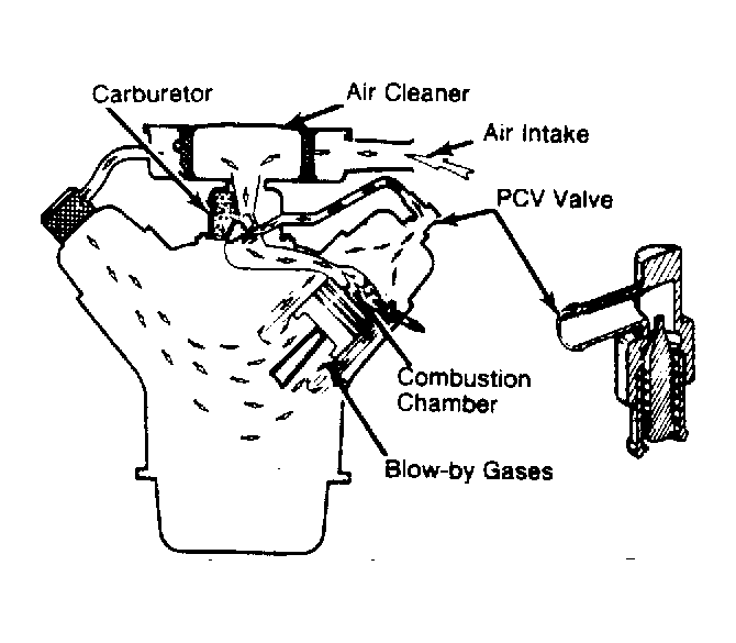 Air then flows into the rocker arm cover and valve compartment. It combines with blow-by gas and unburned air/fuel mixture and burns in combustion chamber. See Fig 1 .