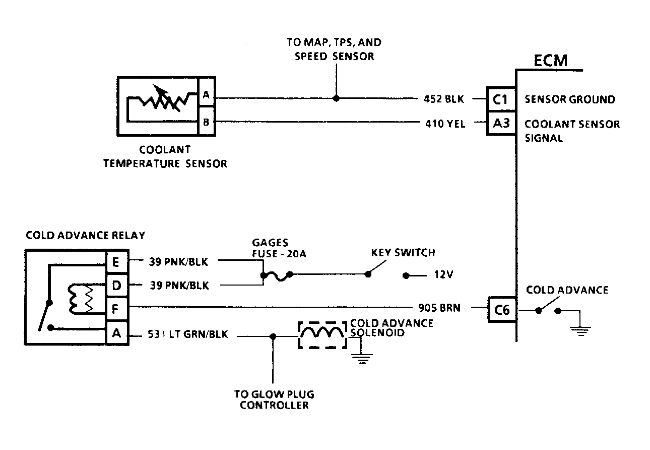 Home >> GMC >> 1991 >> Forward Control 7.4 N >> Repair and Diagnosis >> Engine Performance >> System >> Engine Controls - System/Component Tests >> Fuel System (Diesel Glow Plug System Diagnosis) >> Diesel Cold Advance System Check >> Cold Advance Relay