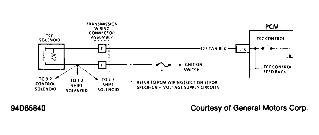 - Connect a test light to battery voltage. Touch TCC control driver terminal with test light. See Figure-Figure . Accelerate vehicle to 45 MPH and note test light. If test light does not illuminate, problem is a faulty ECM connector or ECM. On some models, lock-up signal may be checked at Data Link Connector (DLC) terminal "F" instead of at ECM terminal.