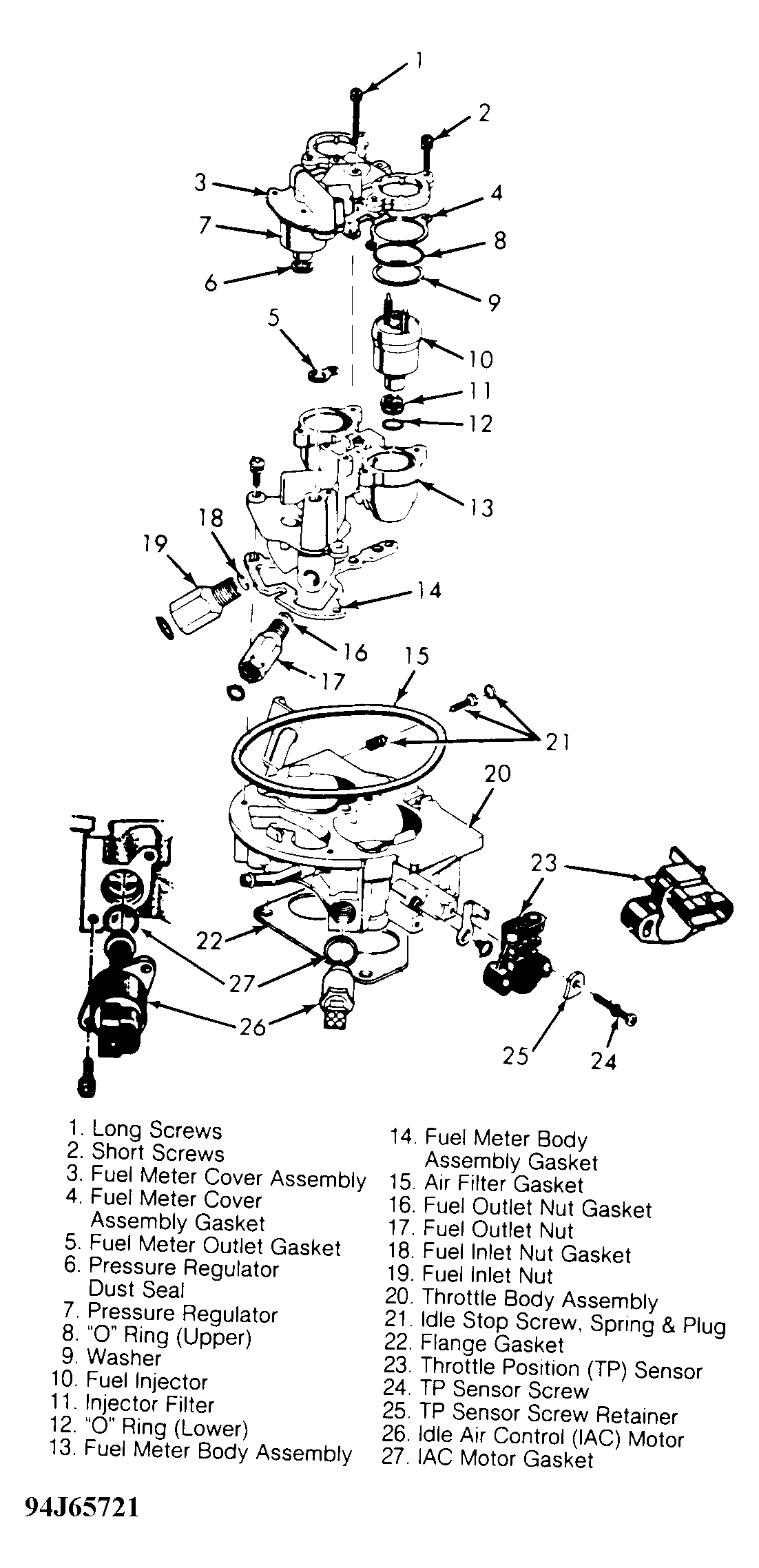 Home >> GMC >> 1994 >> Forward Control 7.4 N >> Repair and Diagnosis (Single Page) >> Engine Performance >> Remove, Overhaul & Install >> Engine Controls - Remove/Install/Overhaul >> Fuel System (Gasoline) >> Throttle Body (TBI) >> Disassembly (Fuel Meter Assembly Model 295)