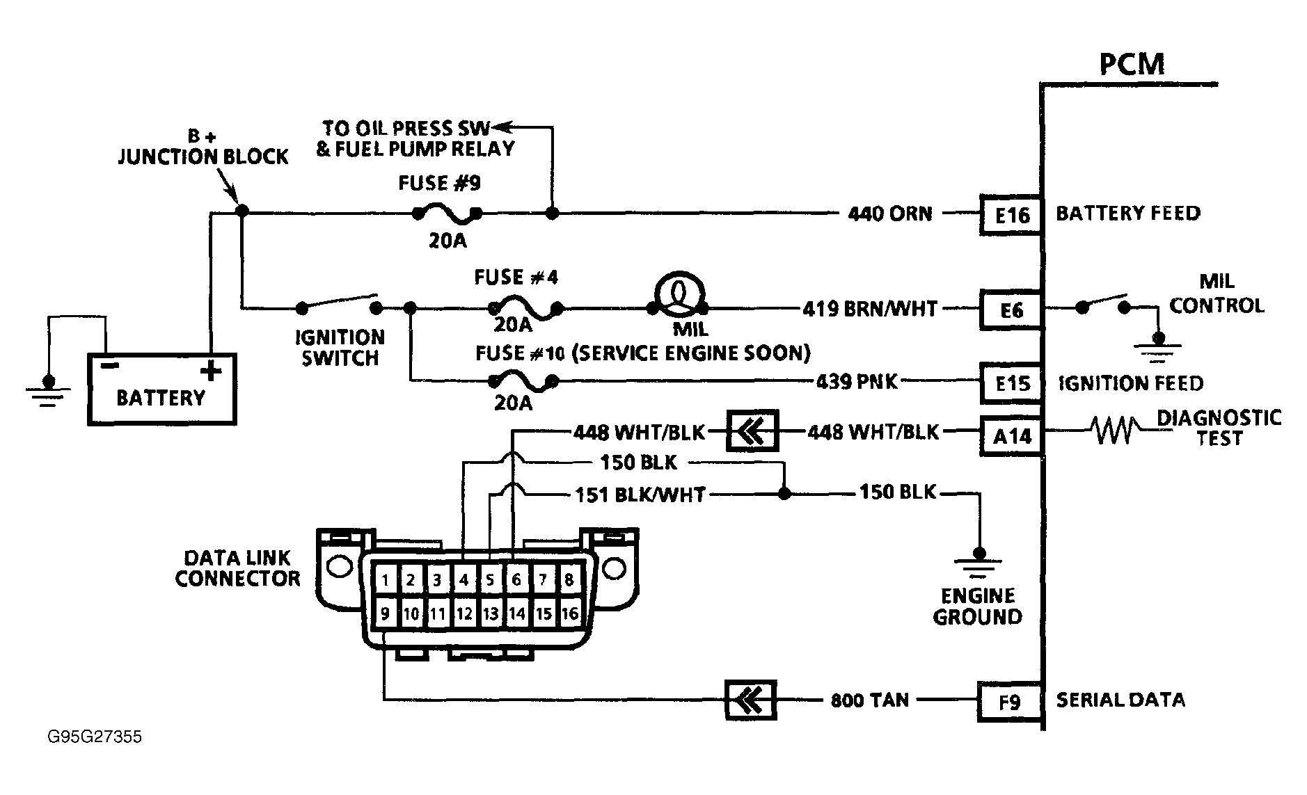 - Turn ignition off. Disconnect PCM connectors. Turn ignition on. If MIL is on, check for short to ground in MIL driver circuit between MIL and PCM driver terminal. See Figure - Figure . Also, see See appropriate WIRING DIAGRAM in the WIRING DIAGRAMS section at the end of this article for terminal identification.