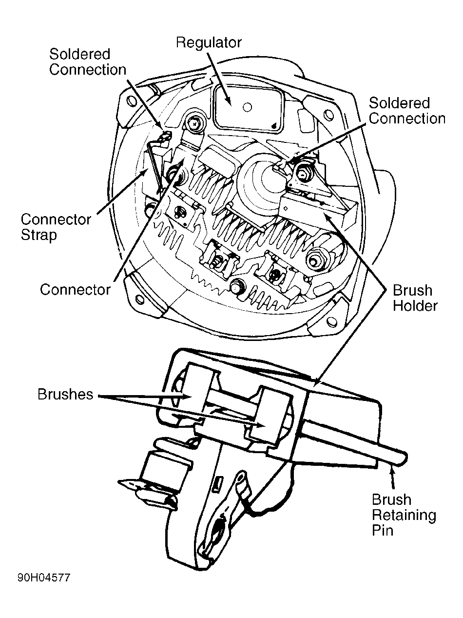 - To reassemble generator, reverse disassembly procedure. Retain brushes with brush retaining pin during reassembly. See Figure. Remove retaining pin after tightening through-bolts.