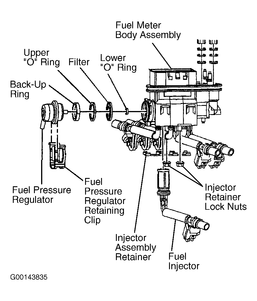 - Lubricate NEW "O" rings with clean engine oil. Install back-up ring, upper "O" ring, filter and lower "O" ring. See Figure. Install fuel pressure regulator with vacuum tube pointing down toward retaining clip.