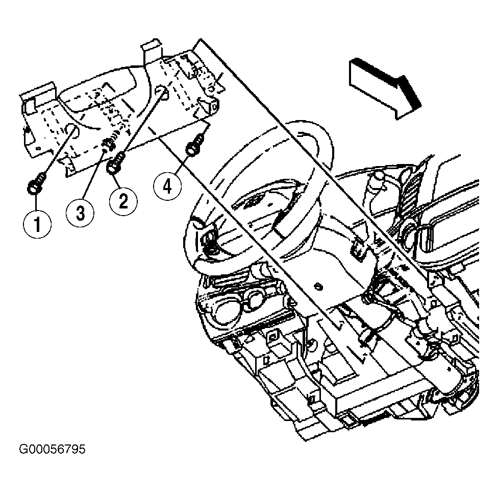 - Ensure to tighten knee bolster bracket bolt in sequence, as illustrated. See Fig 2. To complete installation, reverse removal procedure.