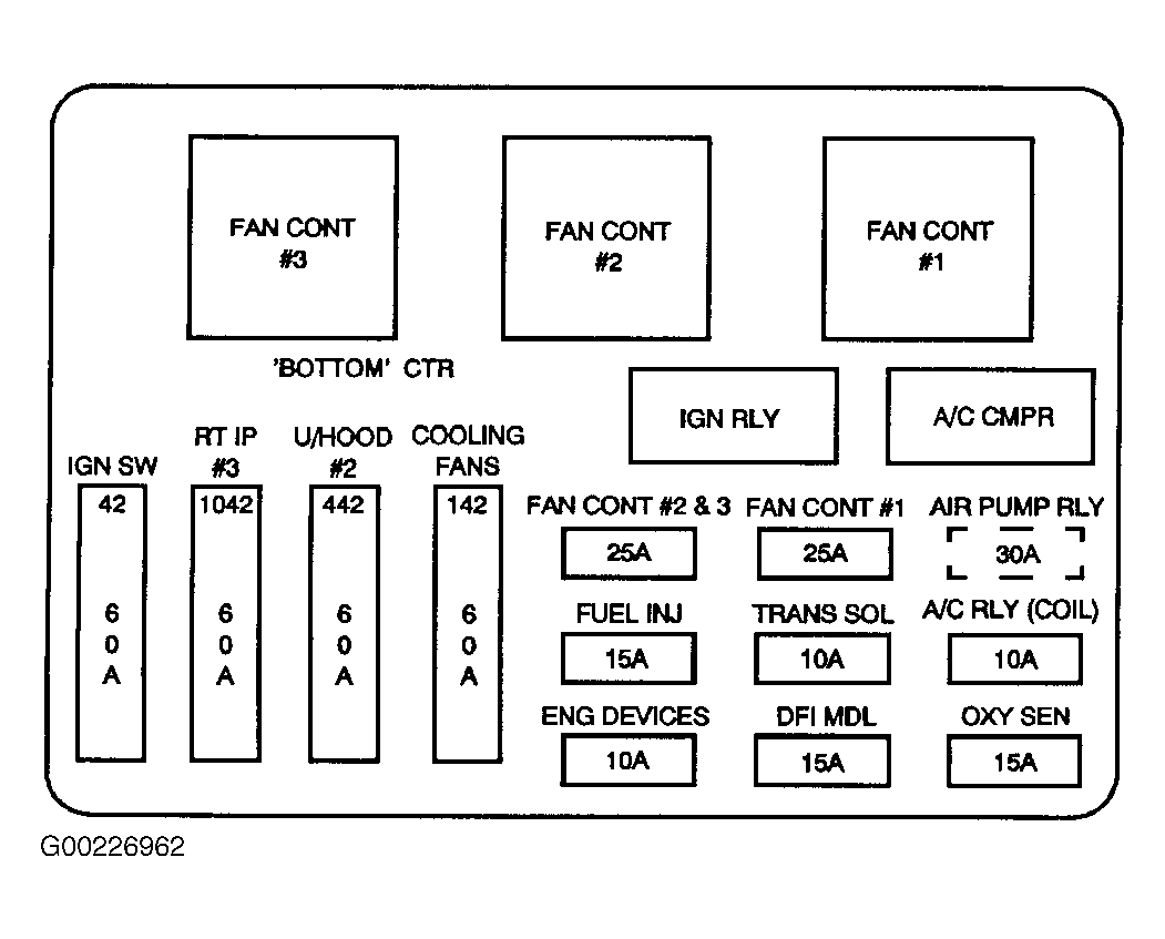 - Check the fuel injector fuse (15-amp), located in the bottom underhood junction block. See Fig 1. Is the fuel injector fuse open? If yes, go to next step. If no, go to step 6.