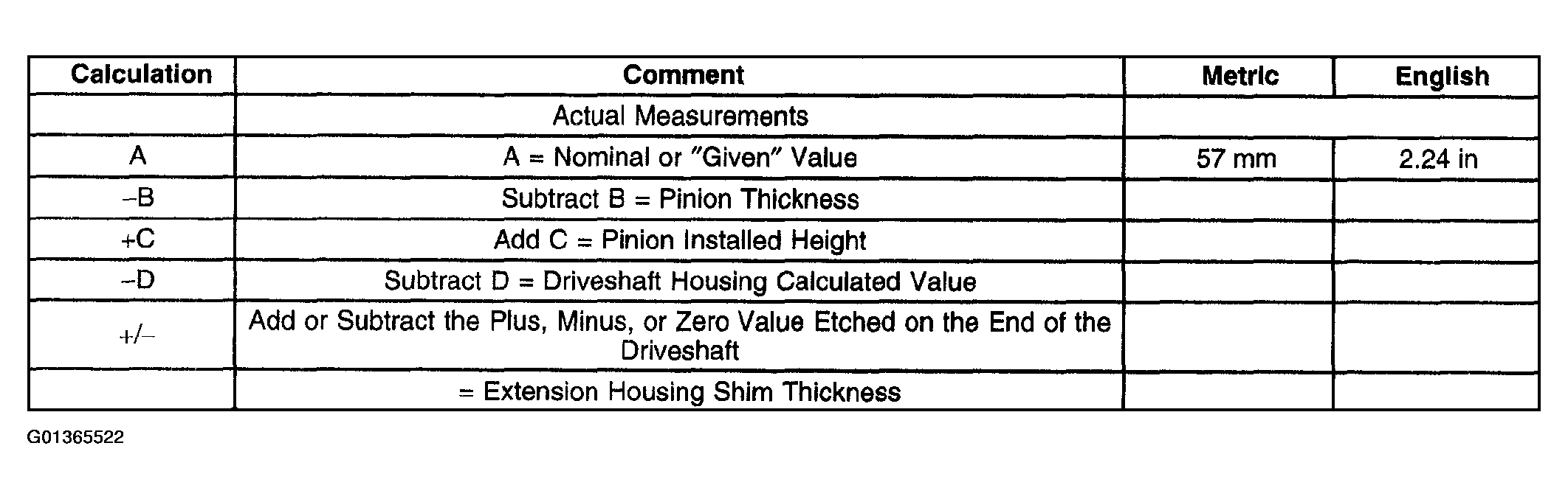 - Calculate the extension housing shim thickness. Refer to Figure.