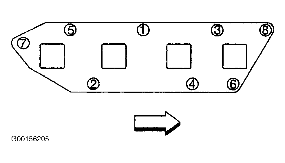 To install, reverse removal procedure. Tighten intake manifold bolts and nuts to specification using an alternating sequence. See Fig 5. See TORQUE SPECIFICATIONS . When installing engine wiring harness bracket, tighten the 2 engine wiring harness bracket-to-valve cover bolts to specification first, followed by the engine wiring harness bracket-to-cylinder head bolt. See Fig 3.