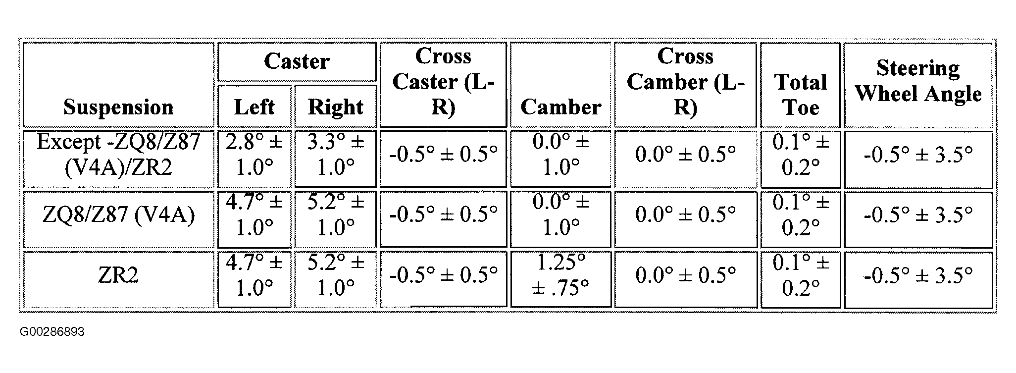 Wheel Alignment Specifications