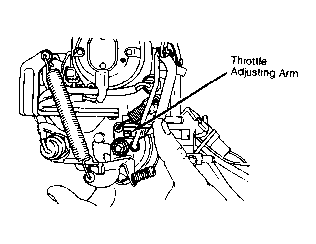 Clearance should be checked at primary throttle valve to bore when secondary throttle valve starts to open. Clearance should be .23" (5.8 mm). Adjust by bending throttle adjusting arm. See Fig 1 .