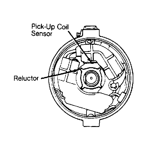 - Disconnect coil wire from distributor cap and ground coil wire. Remove distributor cap and rotor. Ensure reluctor teeth are NOT aligned with pick-up coil sensor. See Fig 1