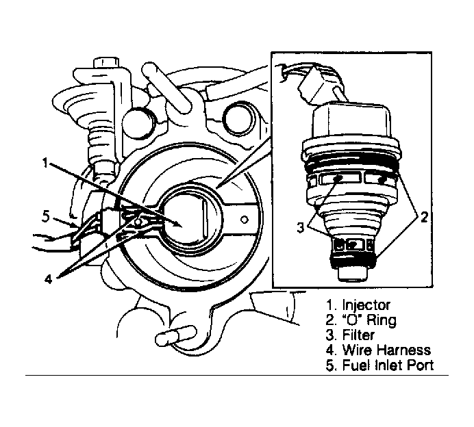 - Disconnect injector connector. See Fig 1 . Slide injector harness grommet from throttle body and remove injector.