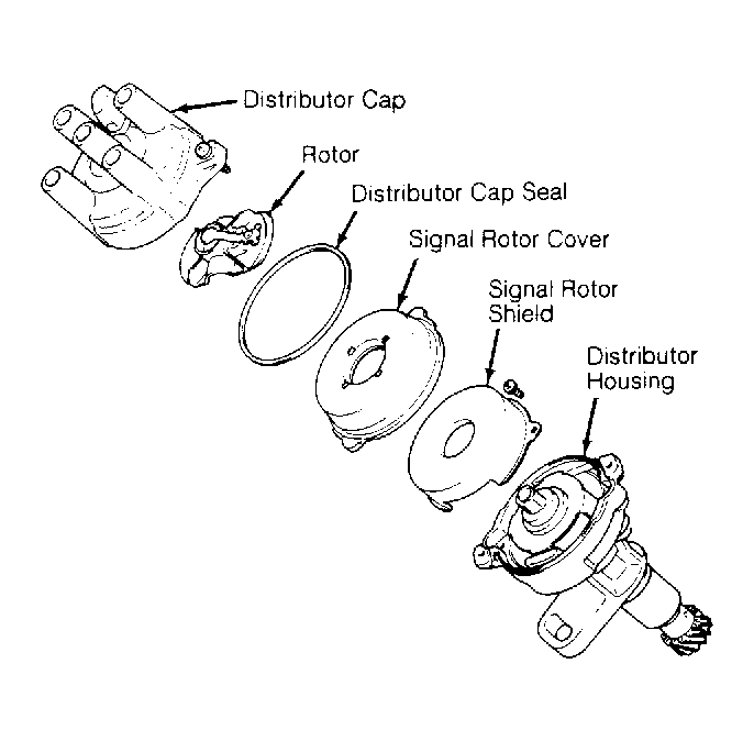 1. Disconnect negative battery cable. Remove distributor cap. See Figure . Mark distributor-to-engine position and distributor rotor-to-distributor housing position for installation reference. Remove distributor harness connector and hold-down bolt. Remove distributor.