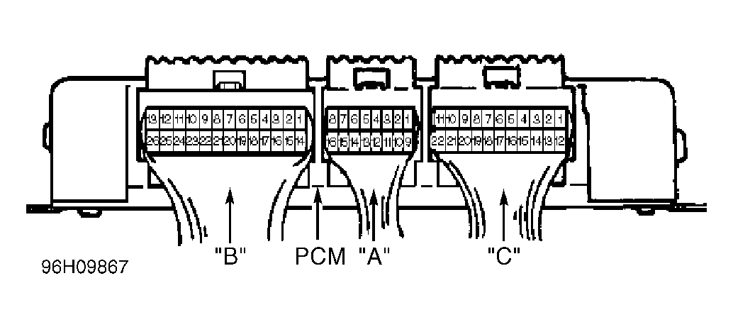 - Remove jumper wire from sensor connector. Using a fused jumper wire, connect (backprobe) PCM harness connector "A", terminal No. 4 (Red/Yellow wire) and connector "B", terminal No. 15 (Gray/Yellow or Black wire) together. See Figure . If display reading is 279°F or more, go to next step. If reading is not as specified, check for poor PCM connections. If connections are okay, replace PCM. Retest system.