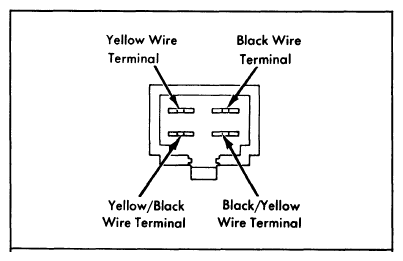 2. Connect voltmeter positive probe to Yellow/Black wire terminal at emission control box connector. Connect negative probe to known good ground (Black ground wire). See Fig 1. Start engine.