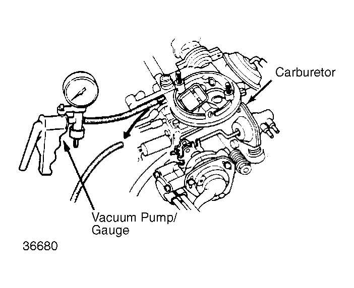 2. Run engine until normal operating temperature is reached. Disconnect hose from power valve and connect vacuum gauge to hose. If there is no vacuum, proceed to step 4).