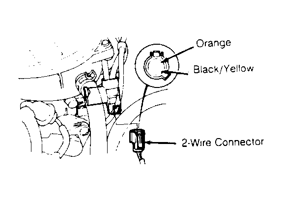 6. Measure voltage between ground and Black/Yellow wire terminal. If voltage is now present, go to next step. If voltage is not present, repair open in Black/Yellow wire between 2-wire connector and No. 14 fuse.