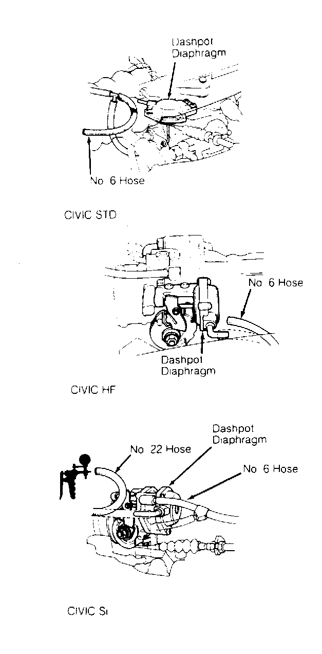 Fig 1: Dashpot Diaphragm Hose Identification (Civic)