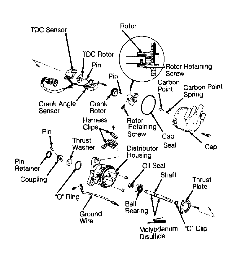 Disconnect 2, 4, 6 or 8-pin connector from distributor. Disconnect spark plug wires and coil wire from distributor cap. Remove distributor hold-down bolts. Remove distributor from cylinder head. To install, coat new "O" ring with engine oil and put into place. To finish installation, reverse removal procedure. Set timing to specifications. See ADJUSTMENTS article in this section.