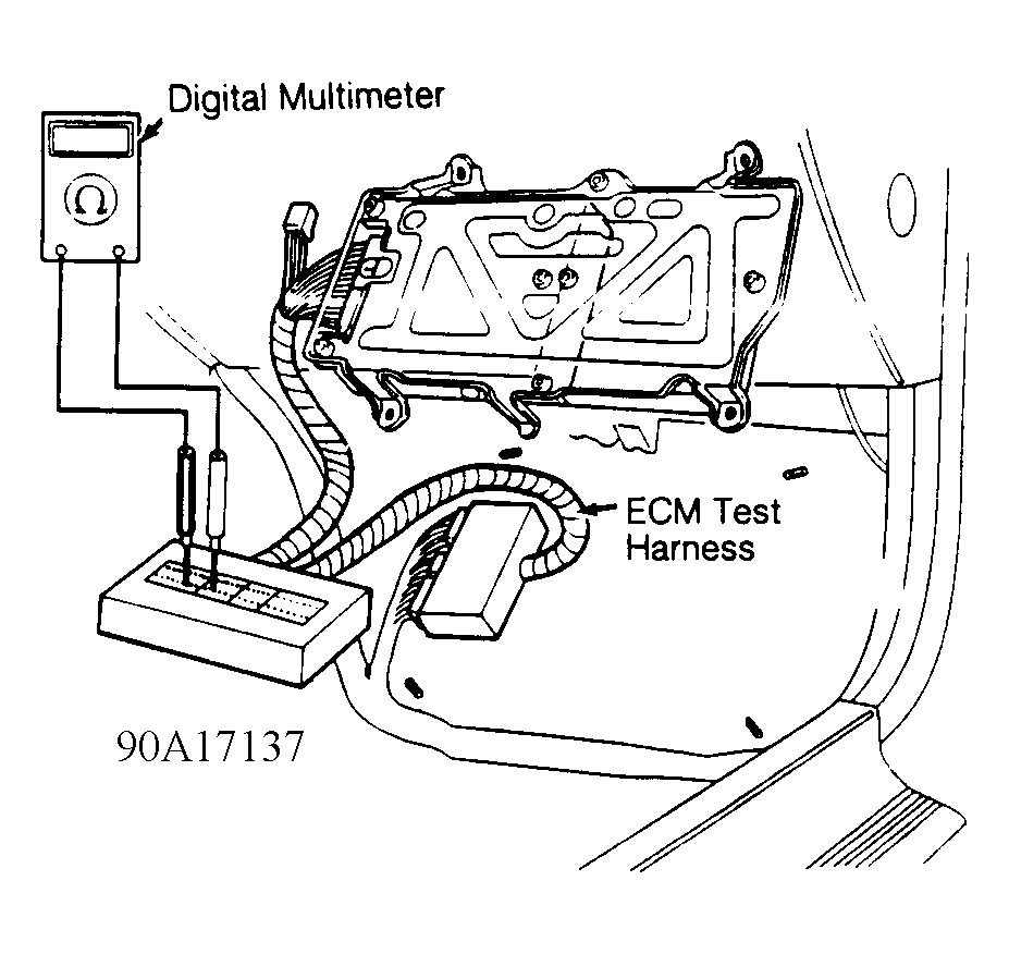 - Connect ECU test harness between ECU and main harness connector. See Figure. Turn ignition on. Using a voltmeter, measure voltage between D10 (+) and A26 (-) test harness terminals. Refer to Figure.