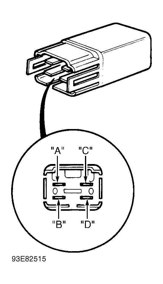 Remove power window relay from underhood fuse/relay box. Using jumper wires, connect terminals "C" and "D" to battery voltage and ground. See Fig 1 . If continuity does not exist between terminals "A" and "B", replace relay.