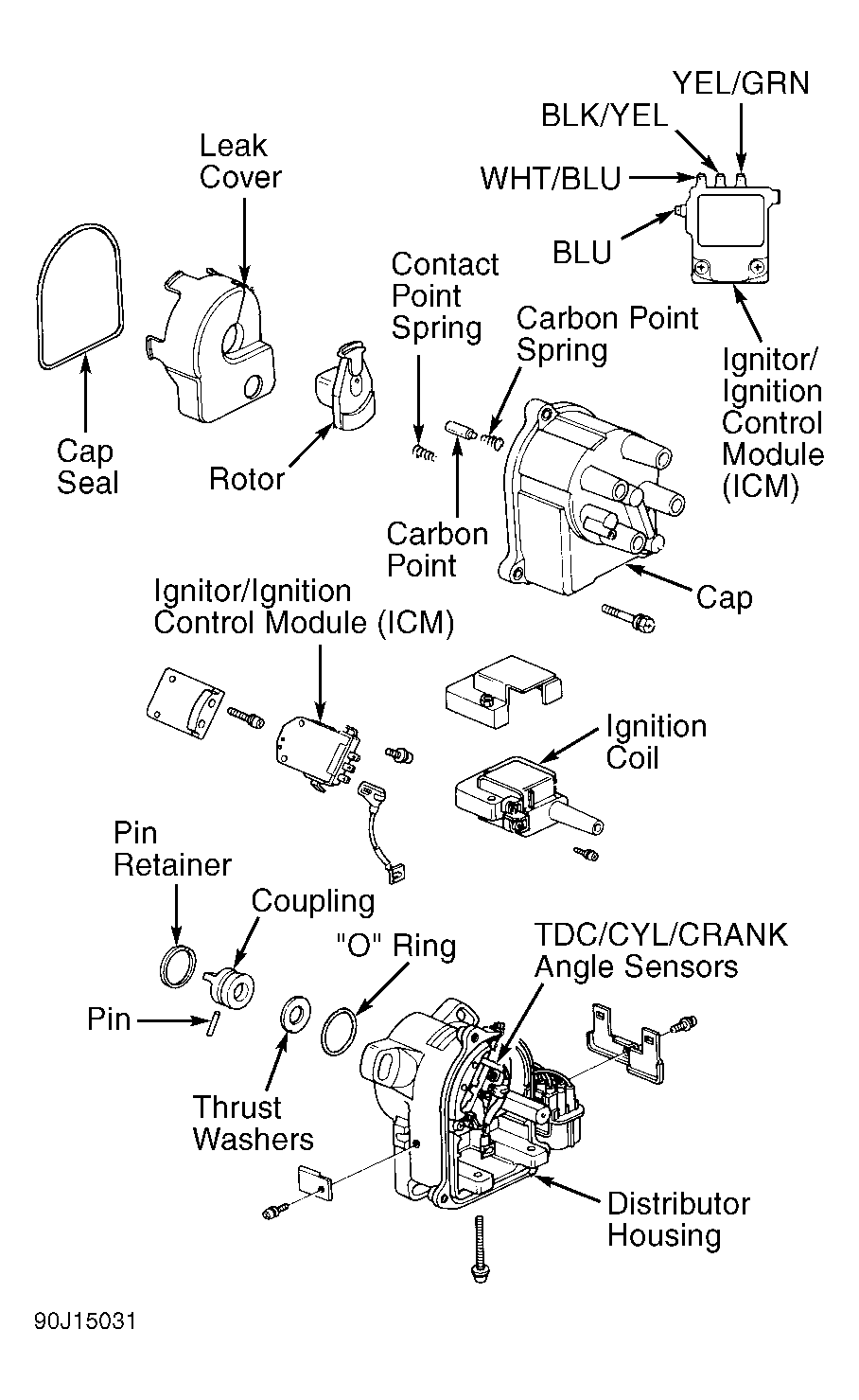 Disconnect 2-pin and 8-pin connectors from distributor. Disconnect spark plug wires and coil wire from distributor cap. Remove distributor hold-down bolts. Remove distributor from cylinder head. To install, coat NEW "O" ring with engine oil and put into place. To complete installation, reverse removal procedure. Set timing to specification. See ADJUSTMENTS article in the ENGINE PERFORMANCE Section.