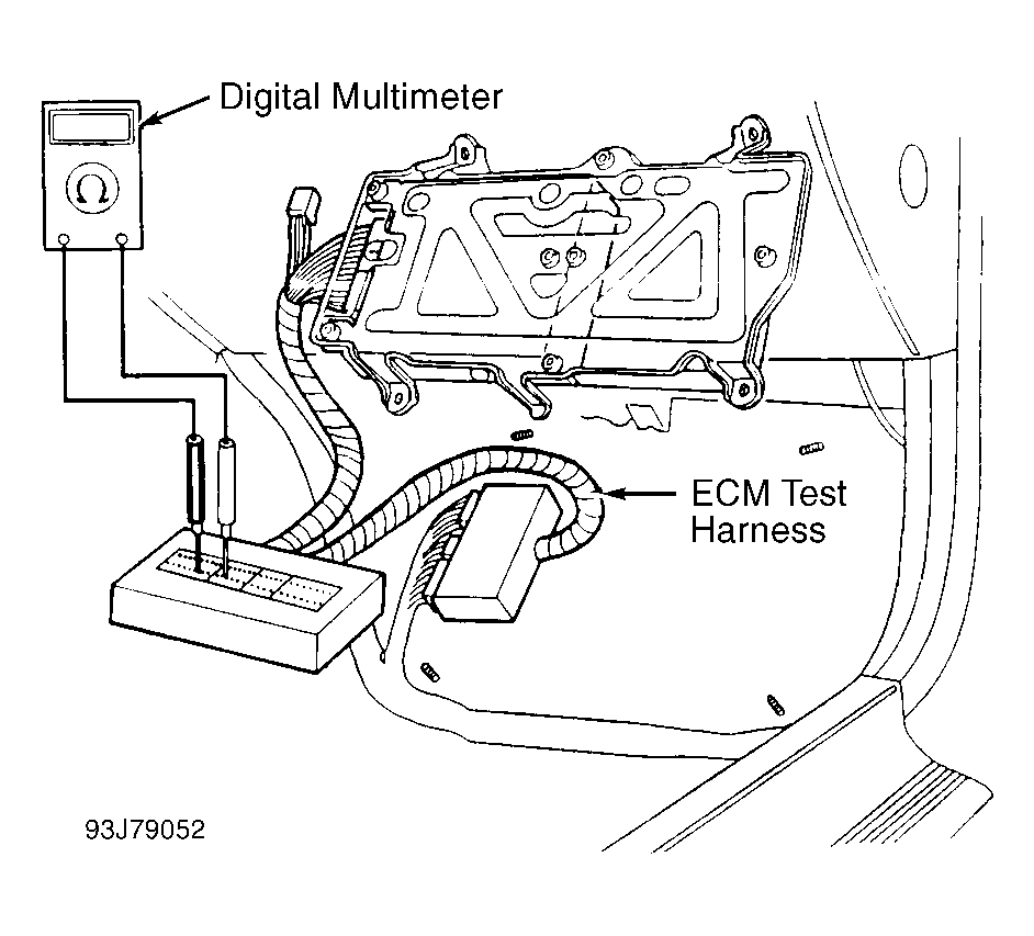 - Turn ignition off. Connect test harness to vehicle wiring harness, not to ECM. See Figure . Turn ignition on. Momentarily connect terminal A9 to terminal A26. If IAC valve clicks, substitute known-good ECM and retest system. If IAC valve does not click, repair Black/Blue wire between IAC and ECM terminal A9.