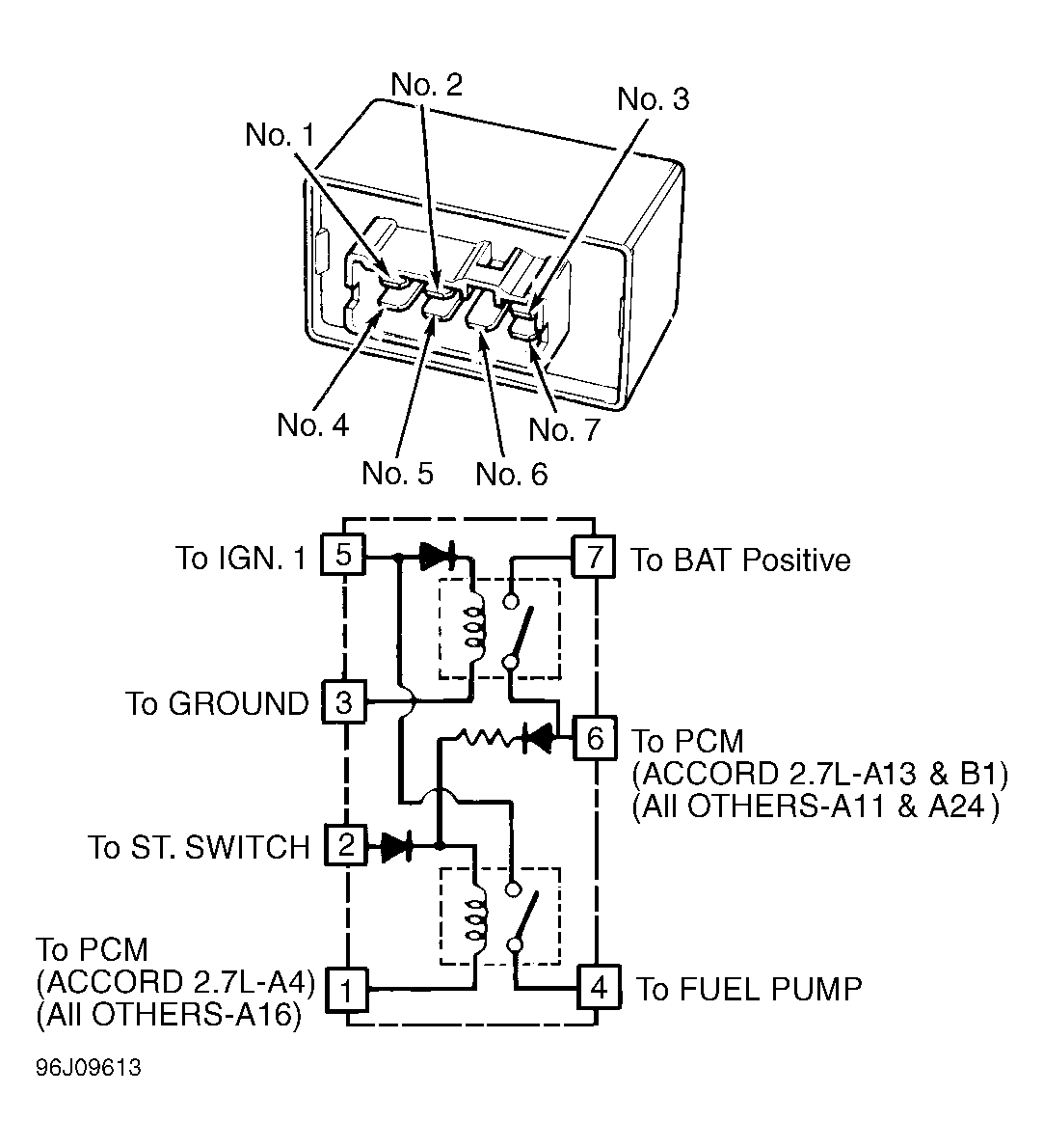 Home >> Honda >> 1996 >> Civic del Sol VTEC >> Repair and Diagnosis >> Engine Performance >> System >> Engine Controls - System & Component Testing >> Relays & Solenoids >> Relays >> PGM-FI Main Relay Test