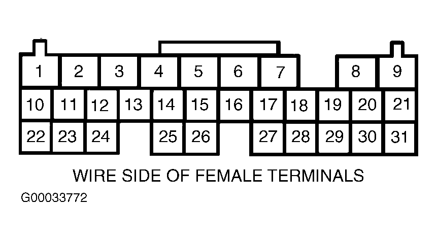 1. Turn ignition on. Backprobing, measure voltage between PCM connector "A" (31-pin connector) terminal No. 24 (Brown/Yellow wire) and PCM connector "E" (31-pin connector) terminal No. 16 (Light Green/Black wire). See Figure. If voltage reading is less than one volt, go to next step. If voltage reading is not less than one volt, go to step  3.