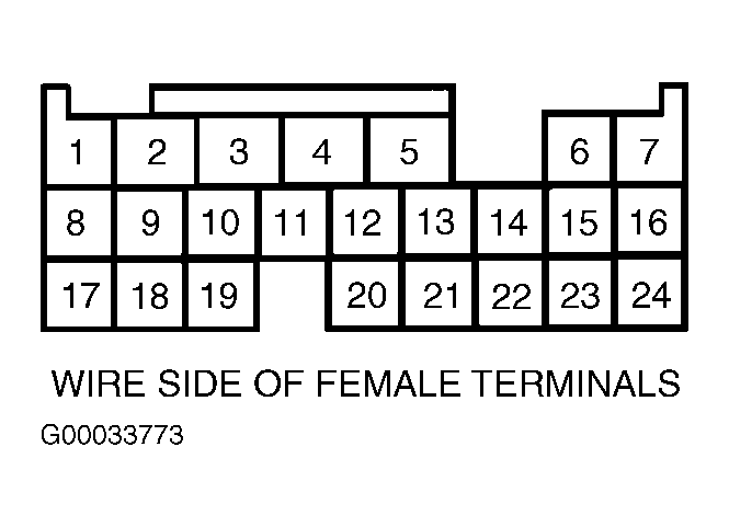 3. Turn headlights and ignition off. Disconnect PCM connector "B" (24-pin connector). Check continuity of White/Green wire between PCM connector "B" (24-pin connector) terminal No. 18 and generator 4-pin connector terminal No. 2. See Figure and Figure . If continuity is present, repair generator. See appropriate GENERATORS & REGULATORS article in STARTING & CHARGING SYSTEMS. If continuity is not present, repair open in White/Green wire between generator and PCM connectors. See WIRING DIAGRAMS article.