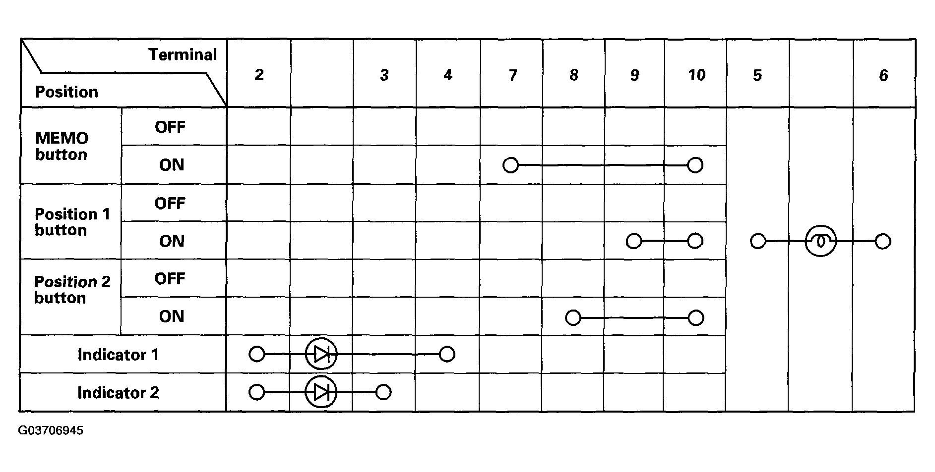 Home >> Honda >> 2005 >> Odyssey EX >> Repair and Diagnosis >> Body & Frame >> Seats >> Driving Position Memory Systems (DPMS) >> Driving Position Memory Switch Test/Replacement