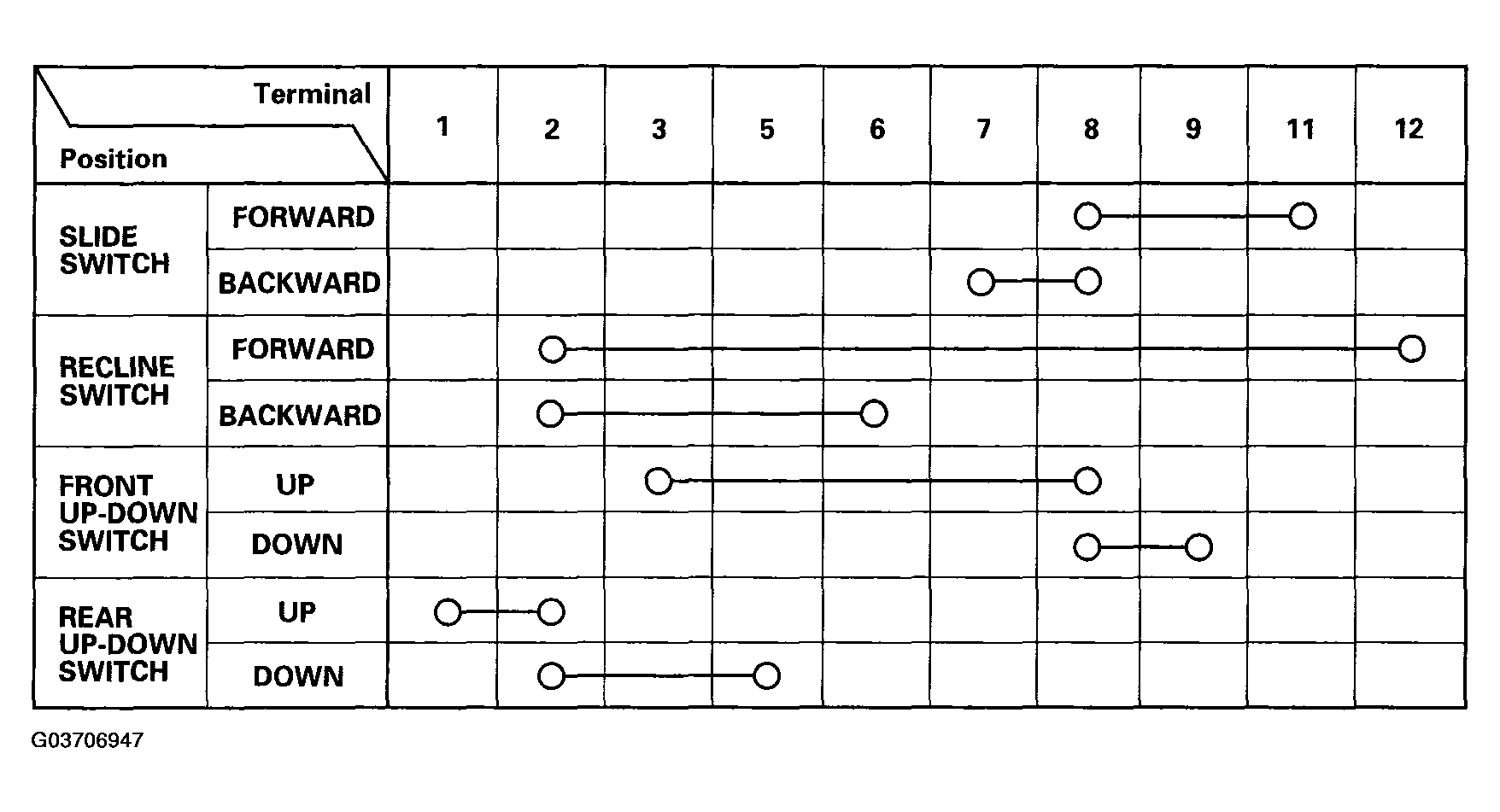 - Disconnect the 12P connector from the power seat adjustment switch (B).