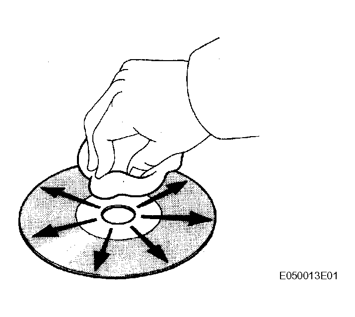 1. If the disc gets dirty, clean the disc by wiping the surface from the center to the outside, in a radial direction, with a soft cloth as shown in Fig 1.
