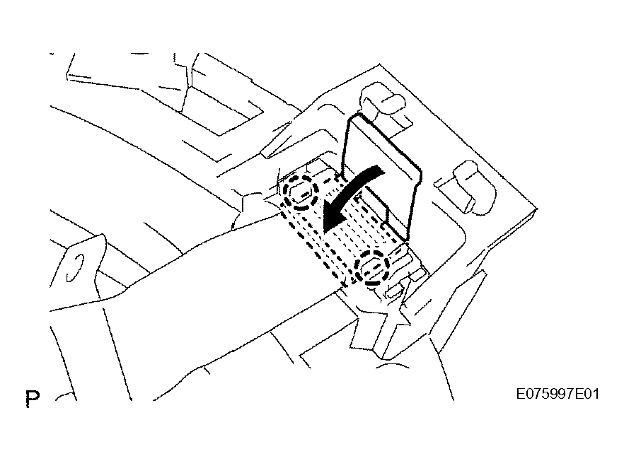 4. Engage the 2 pins and install the steering pad switch LH.