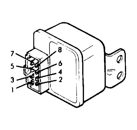 3. Apply battery voltage across terminals No. 8 (positive) and No. 4 (negative) while checking continuity between terminals No. 3 and 7. If continuity is present, relay is okay. If not, replace relay.