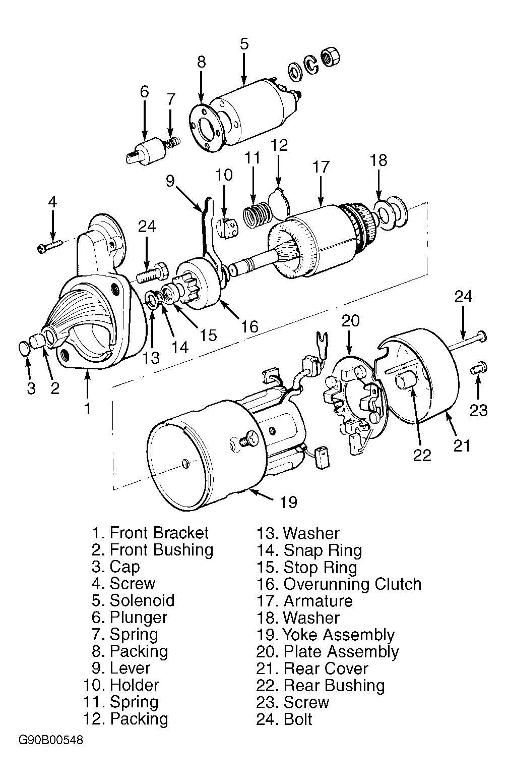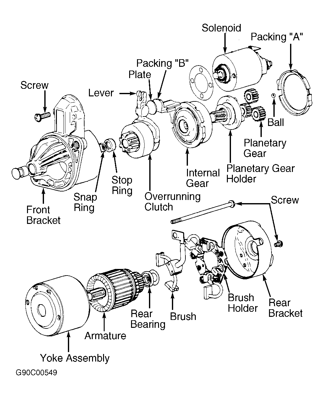 Check front and rear bracket bushing. If bushing is worn or burred, replace as necessary. See Figure or Figure .
