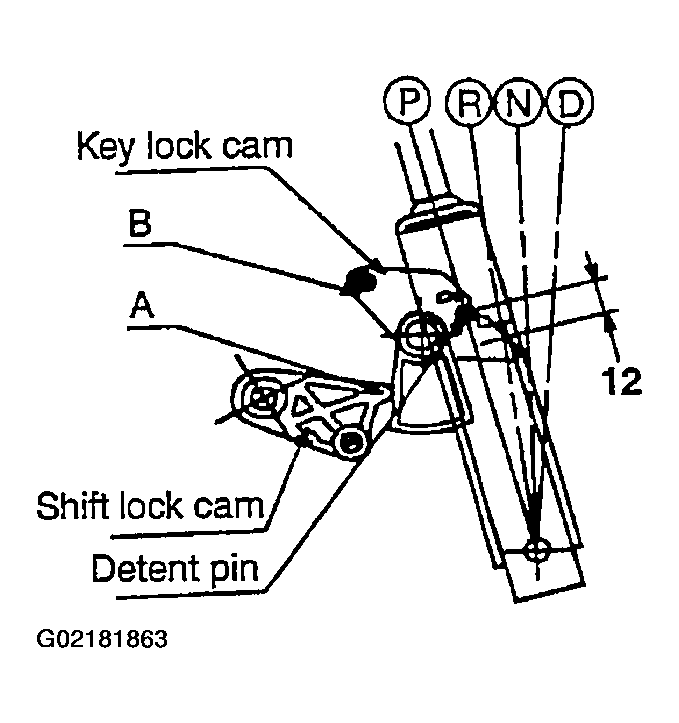 - Check that the shift lock cam is located at "A".