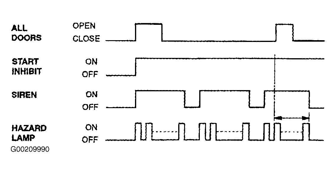 - After finished siren 3 times (120 sec.), start inhibit is ON if door is opened and door latch lock state. See Fig 7 .