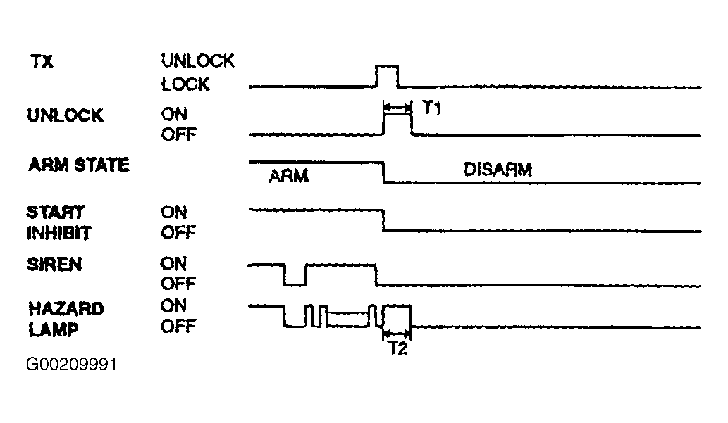 - Disarmed after 30 sec when the ignition switch is turned on while the alarm is sounding. See Fig 6 .