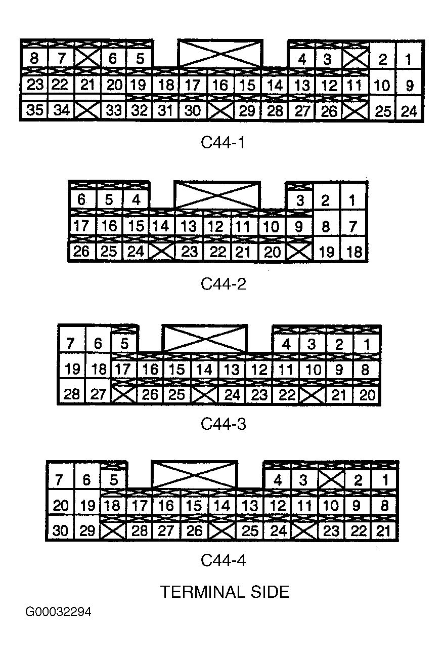 2. Connect voltmeter negative lead to chassis ground. Connect positive lead to each ECM ground terminal. See PCM/ECM GROUND TERMINAL IDENTIFICATION  table. With engine running, voltmeter should indicate less than one volt. If voltmeter indicates greater than one volt, check for open, corrosion or loose connection in ground circuit.