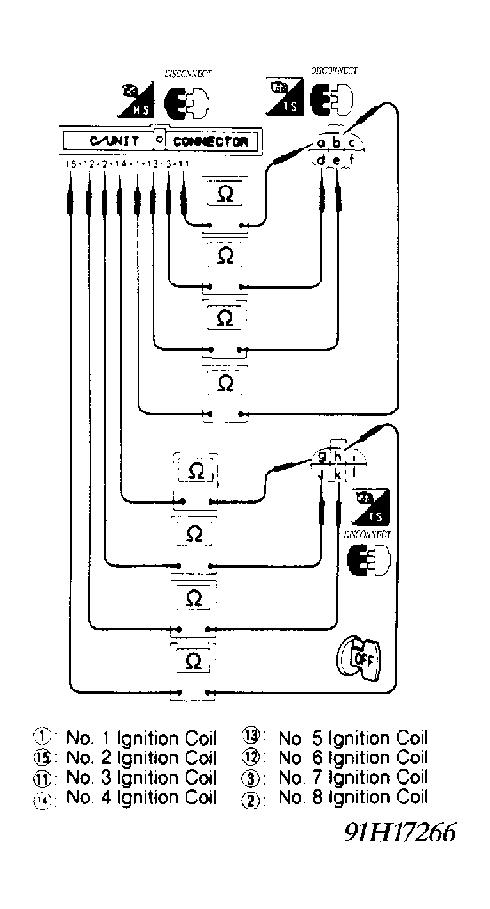 - Check harness continuity between ECU and ignition coil in each cylinder. See Fig 1