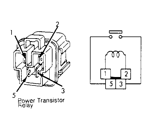 2. Disconnect power source and recheck continuity across terminals No. 3 and 5. No continuity should exist. If continuity exists, check harness and connectors. If harness and connectors are okay, replace power transistor relay.