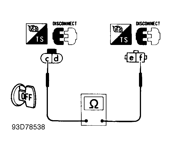 Disconnect knock sensor harness connector from sub-harness. Verify harness continuity between sub-harness terminal "c" and knock sensor harness connector terminal "f" (White wire). See Figure . If continuity is present, go to next step. If continuity is not present, repair harness or connectors as necessary.