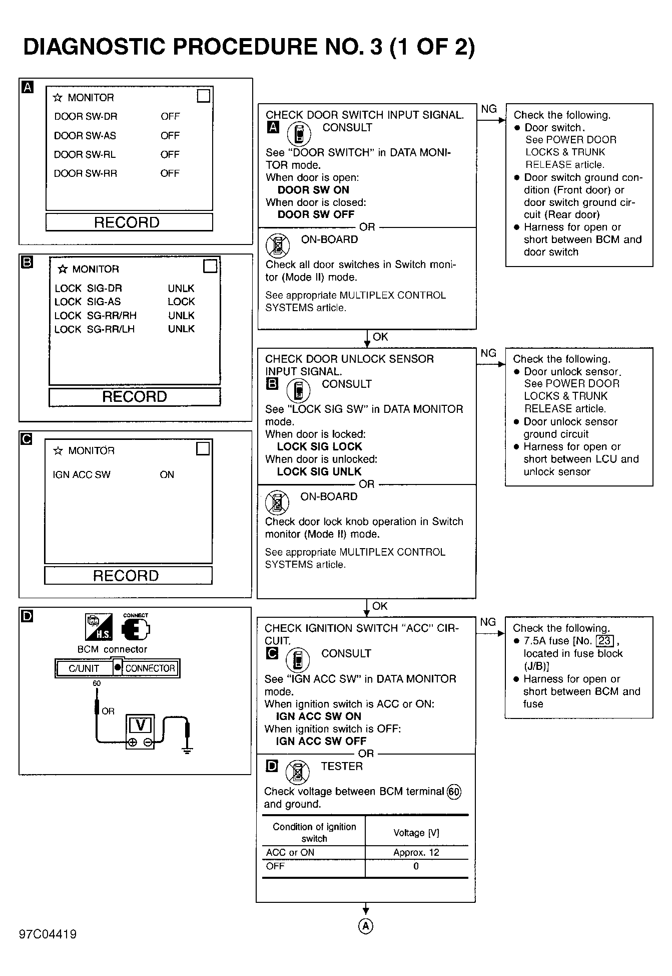 Home >> Infiniti >> 1999 >> Q45 Base >> Repair and Diagnosis >> Body & Frame >> Body, Cab Control Systems >> Multi-Remote Control Systems >> Trouble Shooting >> Some Remote Controller Functions Inoperative >> Door Lock Or Unlock Function Inoperative From Remote Controller