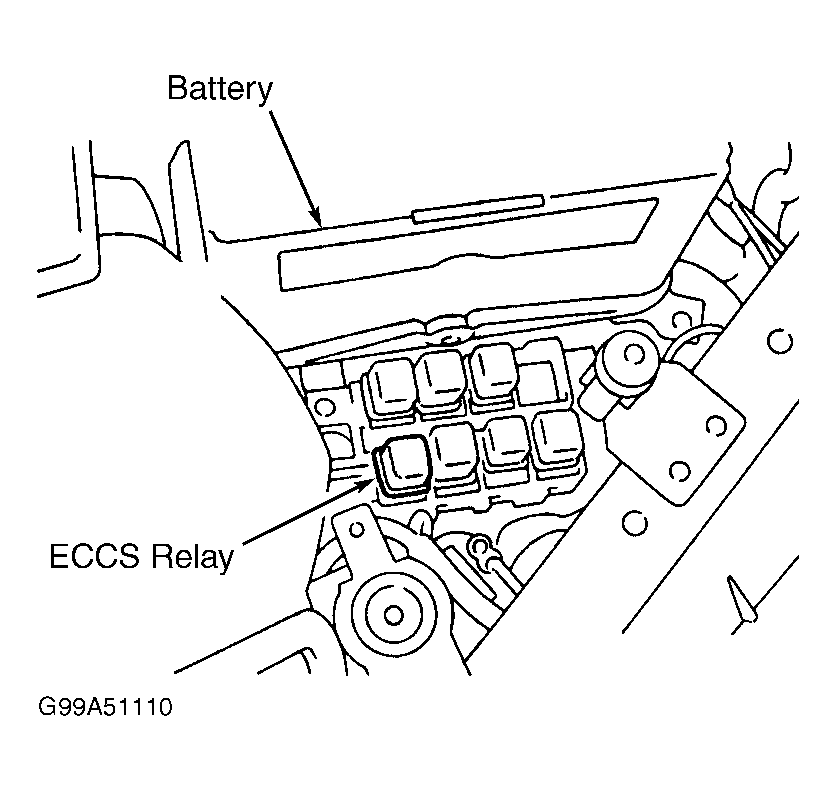 - Check ECCS relay. See RELAYS & SOLENOIDS . Replace if necessary. If ECCS relay is okay, go to next step.
