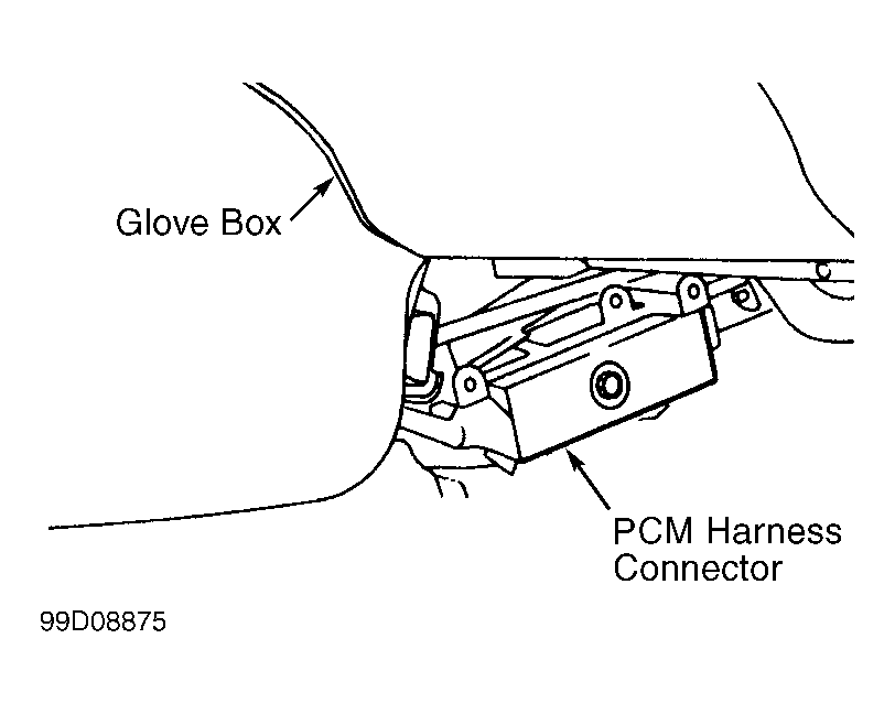 - Turn ignition off. Loosen and retighten engine ground screws, located on intake manifold near fuel injectors. Disconnect PCM harness connector. Check continuity between ground and PCM harness connector terminals No. 10, 19, 25, 32, 108, 116 and 124. If continuity exists, go to next step. If continuity does not exist, repair open ground circuit.